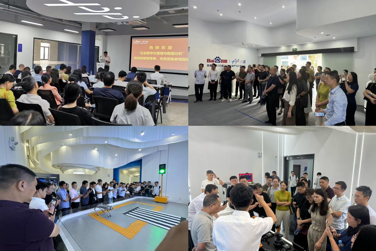 不同于传统的理论教学,本次研修班更加注重实践应用,旨在帮助学员将所学知识转化为实际操作能力。为此,主办方精心设计了一系列互动环节,如模拟实战演练、项目展示、现场教学(走进百度飞浆(江西)人工智能产业赋能服务中心)等等,让学员们能够在真实的业务场景中锻炼自己的数字化管理和数据分析技能。同时,通过与其他学员的交流合作,大家不仅能够相互学习借鉴,还能建立起宝贵的行业联系网络。
